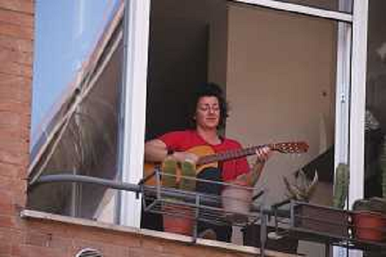 25/04/2020 Cronaca 25-04-2020 REGGIO EMILIA PANDEMIA DEL CORONAVIRUS COVID 19 I CITTADINI CANTANO ALLE FINESTRE E SUONA ...
