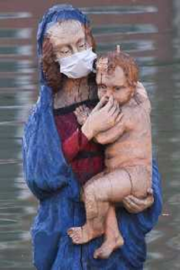 09/04/2020 Cronaca Installazione della Madonna (con mascherina) dell'Acqua Lurida alla Specola - Opera di sensibilizzaz ...