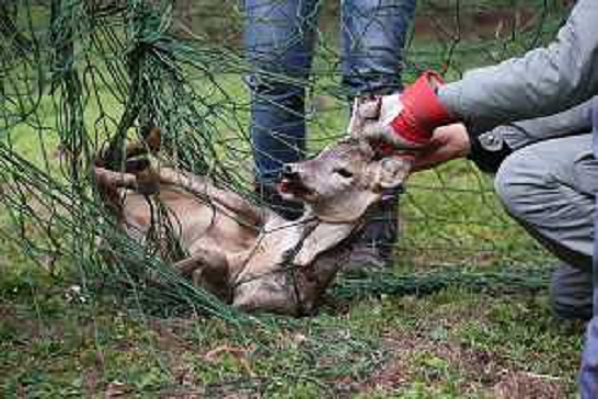 10/03/2020 Cronaca Recuperato un capriolo in un cortile a Reggio Emilia dalla polizia provinciale e gli operatori del R ...