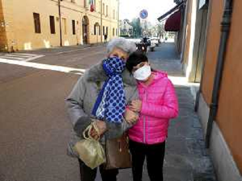 11/03/2020 Cronaca IMOLA 11 03 2020 DUE AMICHE IN PANCHINA CON MASCHERINA - EMERGENZA CORONAVIRUS