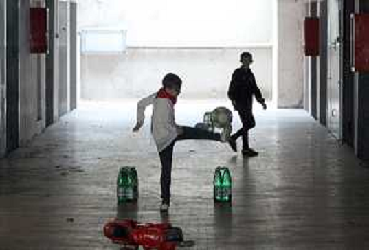 14/03/2020 Cronaca IMOLA 14-03-2020 EMERGENZA CORONAVIRUS BAMBINI GIOCANO A PALLONE NEI CORTILI E ANDRONI DEI PALAZZI