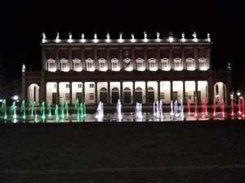 16/03/2020 Cronaca EMERGENZA CORONAVIRUS LA FONTANA NELLA PIAZZA DI REGGIO EMILIA CON LE LUCI DEL TRICOLORE COME INCORA ...