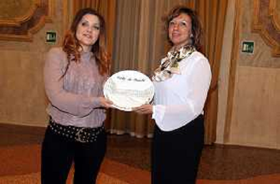 08/06/2019 Cronaca IMOLA 08 06 2019 IMOLA IN MUSICA SINDACA MANUELA SANGIORGI CONSEGNA UN PIATTO DI CERAMICA A NOEMI CA ...
