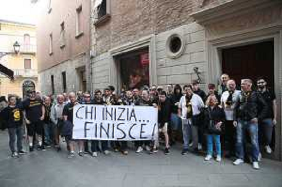 13/05/2025 Cronaca IMOLA 13 05 2025 NEUPHARMA VIRTUS IMOLA PROTESTA DEI TIFOSI DAVANTI LA SEDE