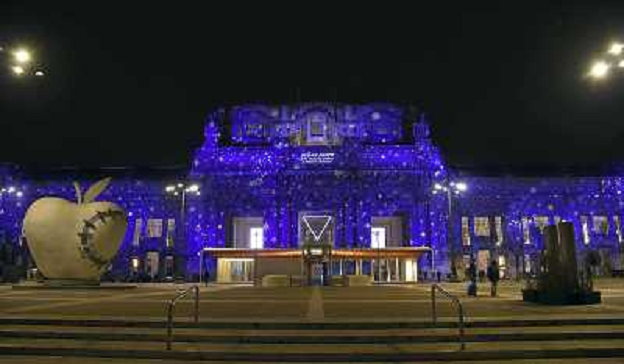 20/12/2016 Cronaca La facciata della Stazione Centrale di Milano illuminata per le festivita' di Natale 2016