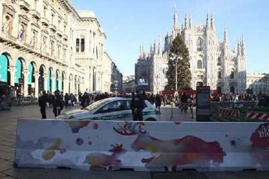 29/12/2016 Cronaca Protezioni e sistemi di sicurezza contro attentati con Barriere jersey con poliziotti e soldati dell ...