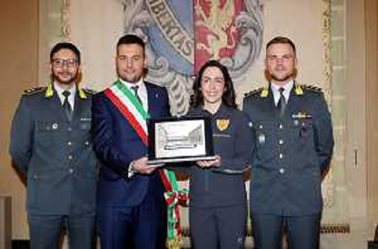 30/01/2026 Cronaca IMOLA 30 01 2026 SINDACO DI IMOLA MARCO PANIERI consegna una targa all'atleta DELL'IMOLA NUOTO Ales ...