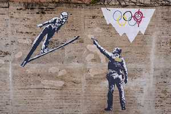 06/02/2026 Cronaca ‘Fuori dai Giochi’ l’opera della Street-Artist LAIKA esposta davanti alla ‘Casa dello Sport’ a Roma. ...