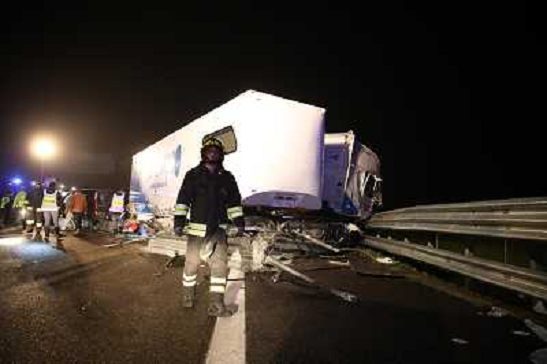 07/03/2016 Cronaca Tragico incidente sull'A21 tra Brescia e Manerbio, tir salta corsia e travolge pulmino di una band m ...