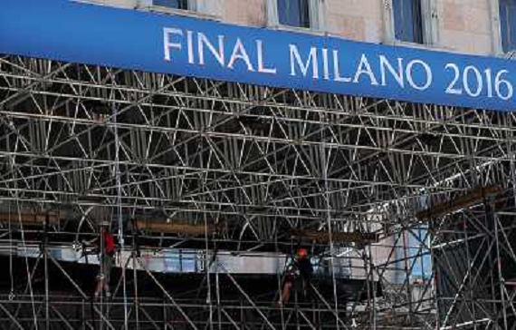 20/05/2016 Cronaca Preparativi in Piazza del Duomo per gli eventi relativi alla Finale di Champions League Milano - 20. ...