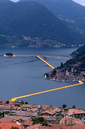 28/06/2016 Cronaca ' The Floating Piers ' un ponte immenso, fluttuante, rivestito di un tessuto giallo cangiante, che a ...