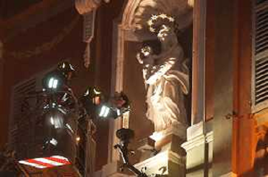 08/12/2023 Cronaca IMOLA 08 12 2023 L'OMAGGIO DEI VIGILI DEL FUOCO CON UNA CORONA DI FIORI SULLA STATUA DELLA MADONNA I ...