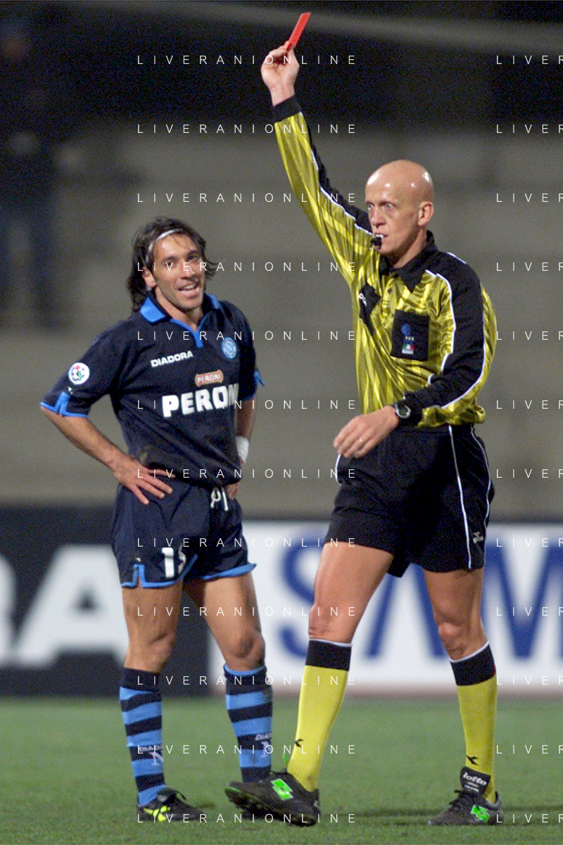 napoli calcio 2001/2002 nella foto l'arbitro pierluigi collina estrae il cartellino rosso per l'espulsione di raffaele ametrano agenzia aldo liverani sas