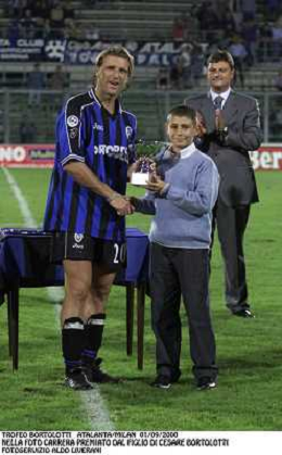 TROFEO BORTOLOTTI ATALANTA- MILAN 01/09/2000 NELLA FOTO CARRERA PREMIATO DAL FILGLIO DI CESARE BORTOLOTTI FOTOSERVIZIO ALDO LIVERANI