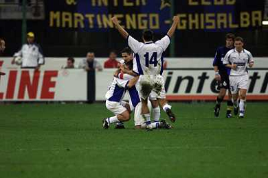 28-SETTEMBRE 2000 COPPA UEFA NELLA FOTO ABBRACCI INTER AG ALDO LIVERANI SAS