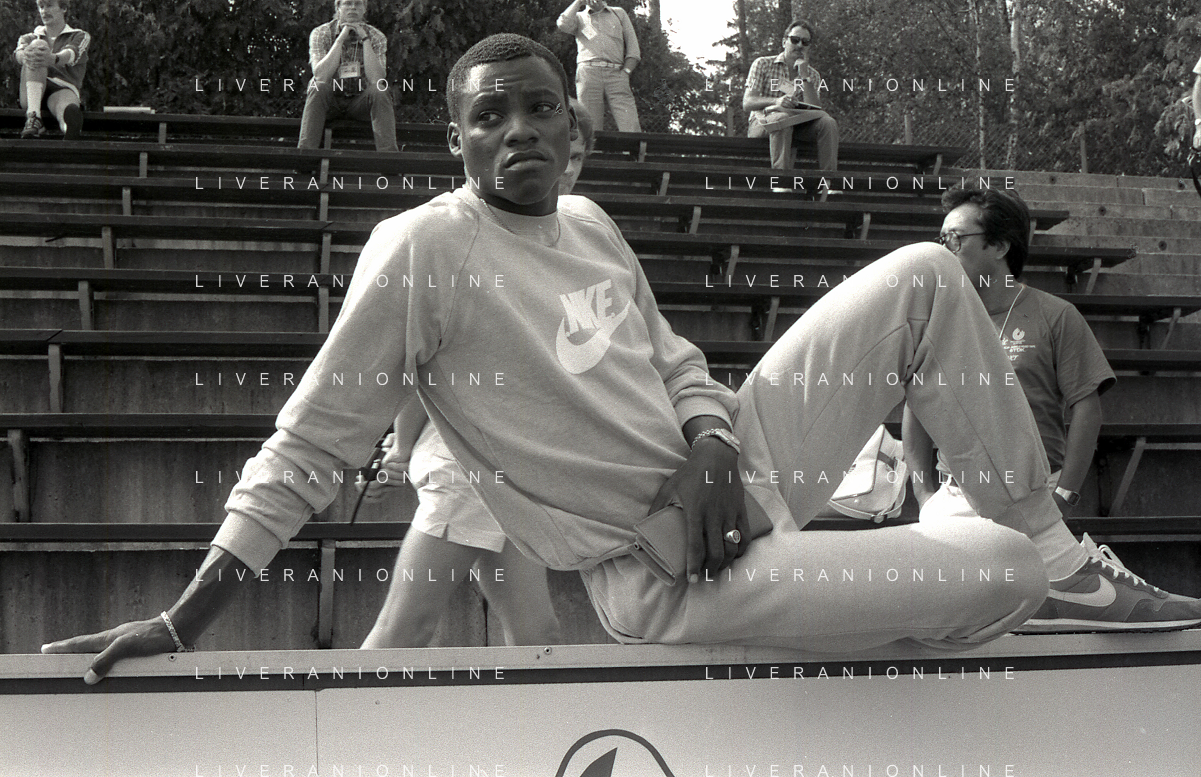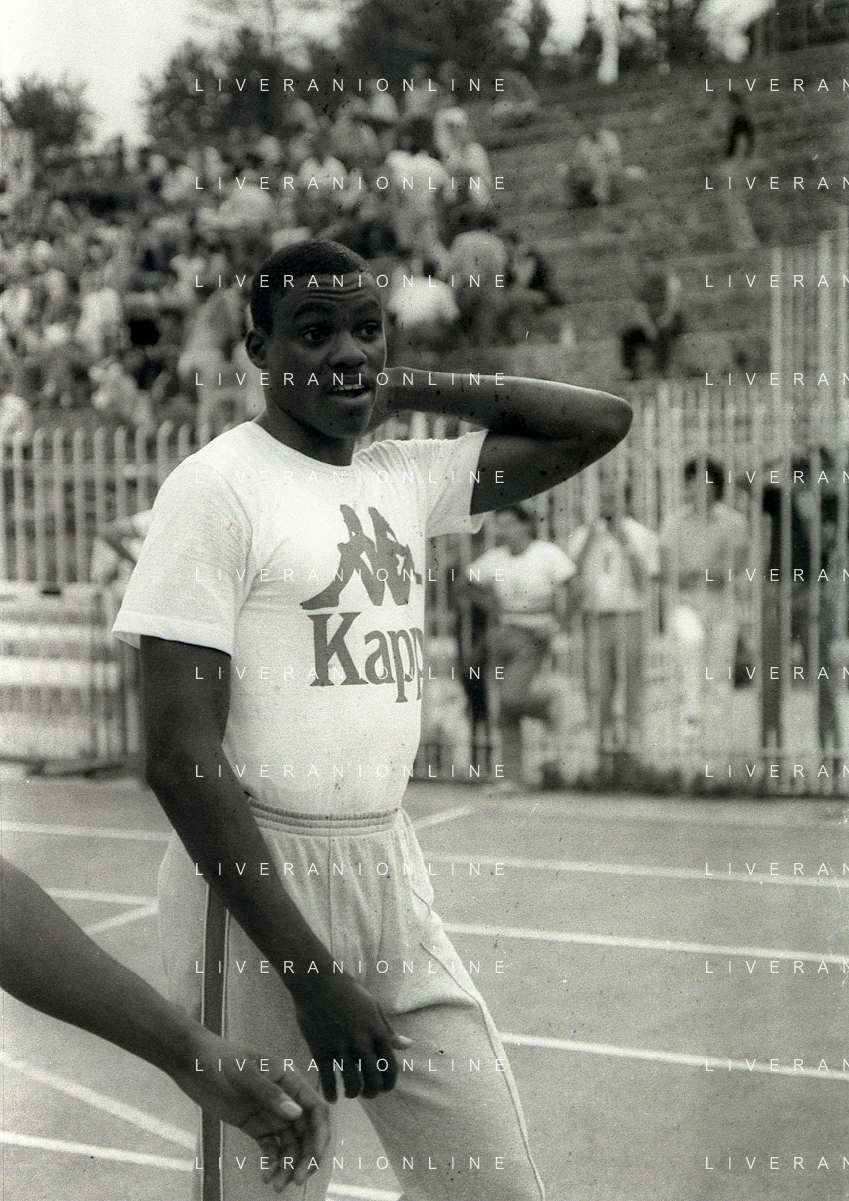 NEG-RETROSPETTIVA CARL LEWIS ATLETICA NELLA FOTO CARL LEWIS A MILANO NELL'ANNO 1981 AG ALDO LIVERANI SAS