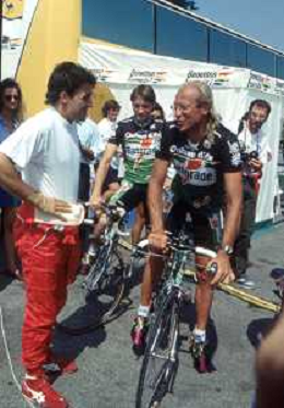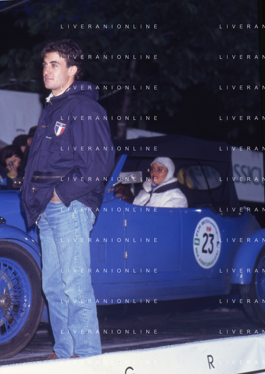 DIAP-RETROSPETTIVA JEAN ALESI PILOTA F1 NELLA FOTO JEAN ALESI NELL'ANNO 1991 OSPITE DELLA MILLE MIGLIA A BRESCIA AG CONTROLUCE-AG ALDO LIVERANI SAS