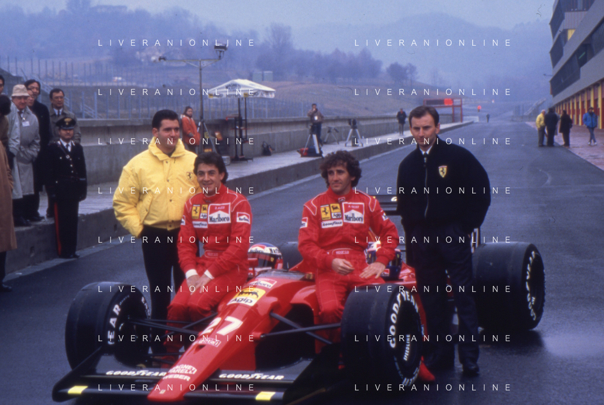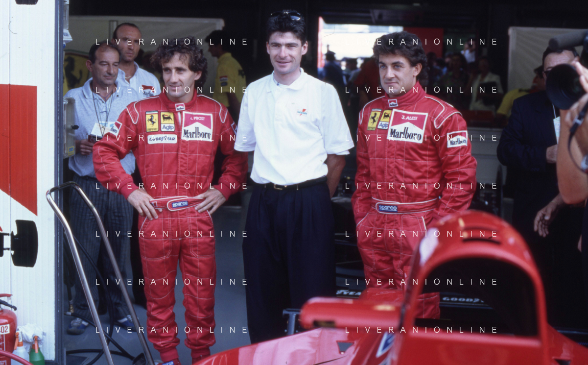 DIAP-RETROSPETTIVA JEAN ALESI PILOTA F1 NELLA FOTO JEAN ALESI NELL'ANNO 1991 CON ALAIN PROST E GIANNI BUGNO AG CONTROLUCE-AG ALDO LIVERANI SAS