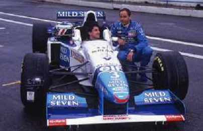 DIAP-RETROSPETTIVA JEAN ALESI PILOTA F1 NELLA FOTO JEAN ALESI CON KUMIKO GOTO NELL'ANNO 1997 CON LA BENETTON AG CONTROLUCE-AG ALDO LIVERANI SAS