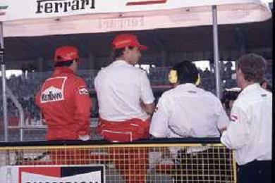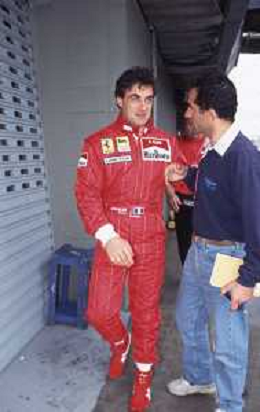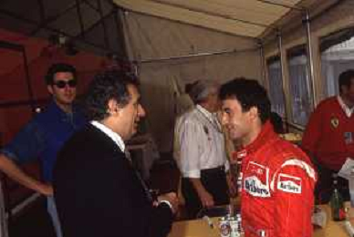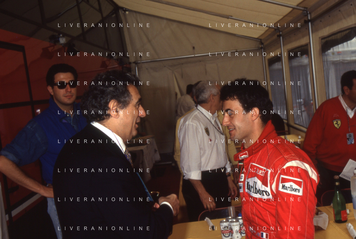 DIAP-RETROSPETTIVA JEAN ALESI PILOTA F1 NELLA FOTO JEAN ALESI NELL'ANNO 1995 CON LA FERRARI CON PLACIDO DOMINGO AG CONTROLUCE-AG ALDO LIVERANI SAS