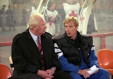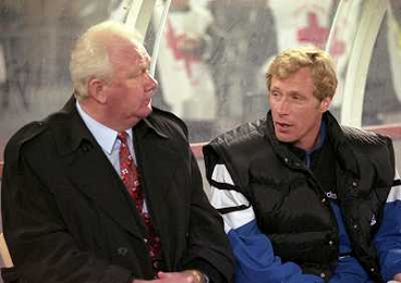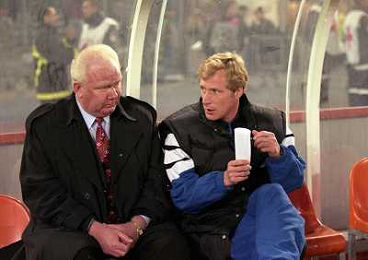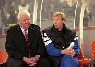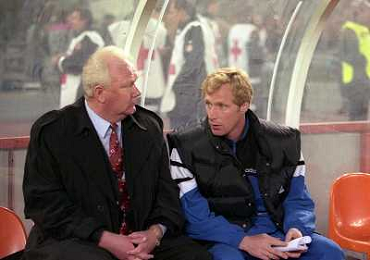 TORINO 04-03-1998 COPPA CAMPIONI JUVENTUS DINAMO KIEV NELLA FOTO Valeriy Lobanovskyi CON OLEKSIJ MIKHAILICHENKO AG ALDO LIVERANI SAS