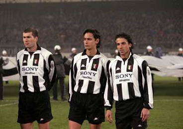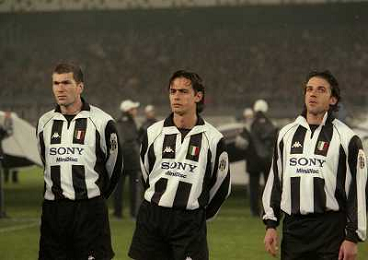 TORINO 04-03-1998 COPPA CAMPIONI JUVENTUS DINAMO KIEV NELLA FOTO ZINEDINE ZIDANE CON ALESSANDRO DEL PIERO E FILIPPO INZAGHI AG ALDO LIVERANI SAS