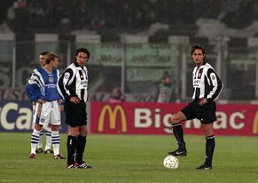 TORINO 04-03-1998 COPPA CAMPIONI JUVENTUS DINAMO KIEV NELLA FOTO Andriy Shevchenko CON MORENO TORRICELLI AG ALDO LIVERANI SAS