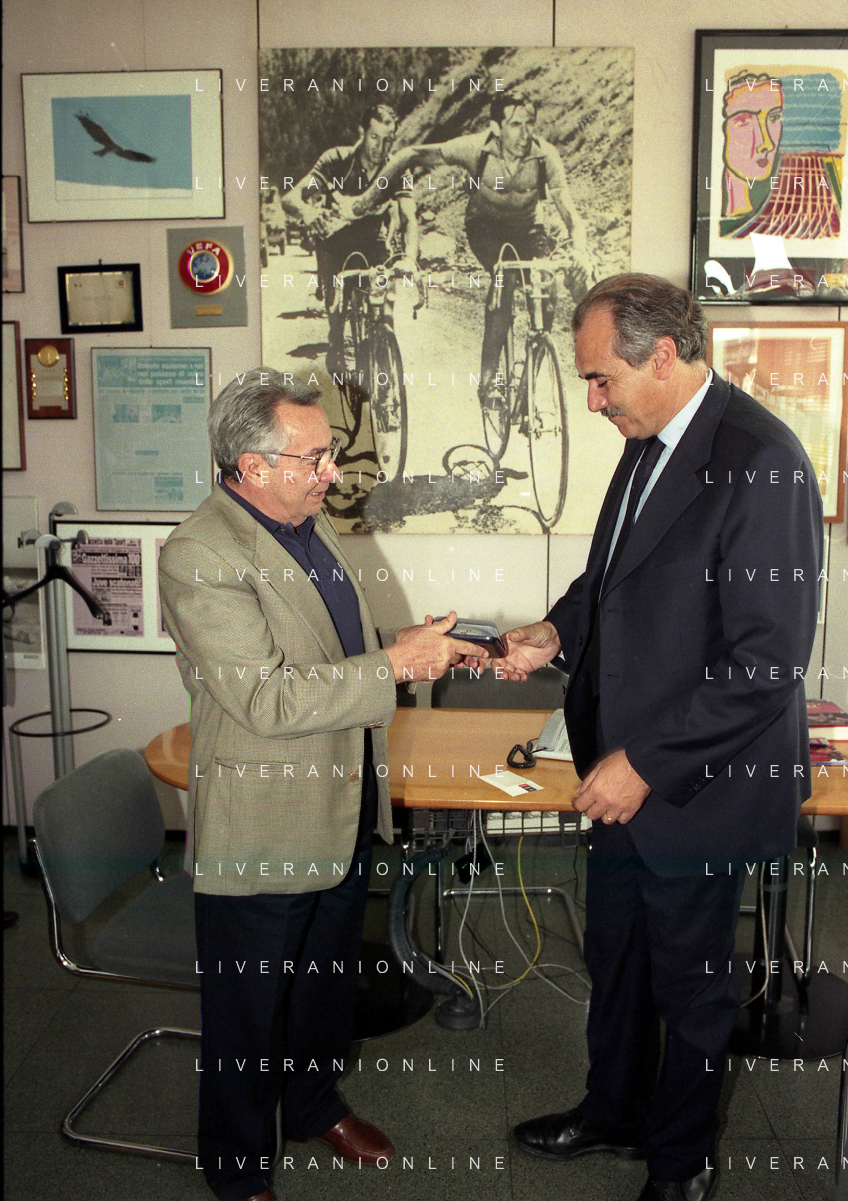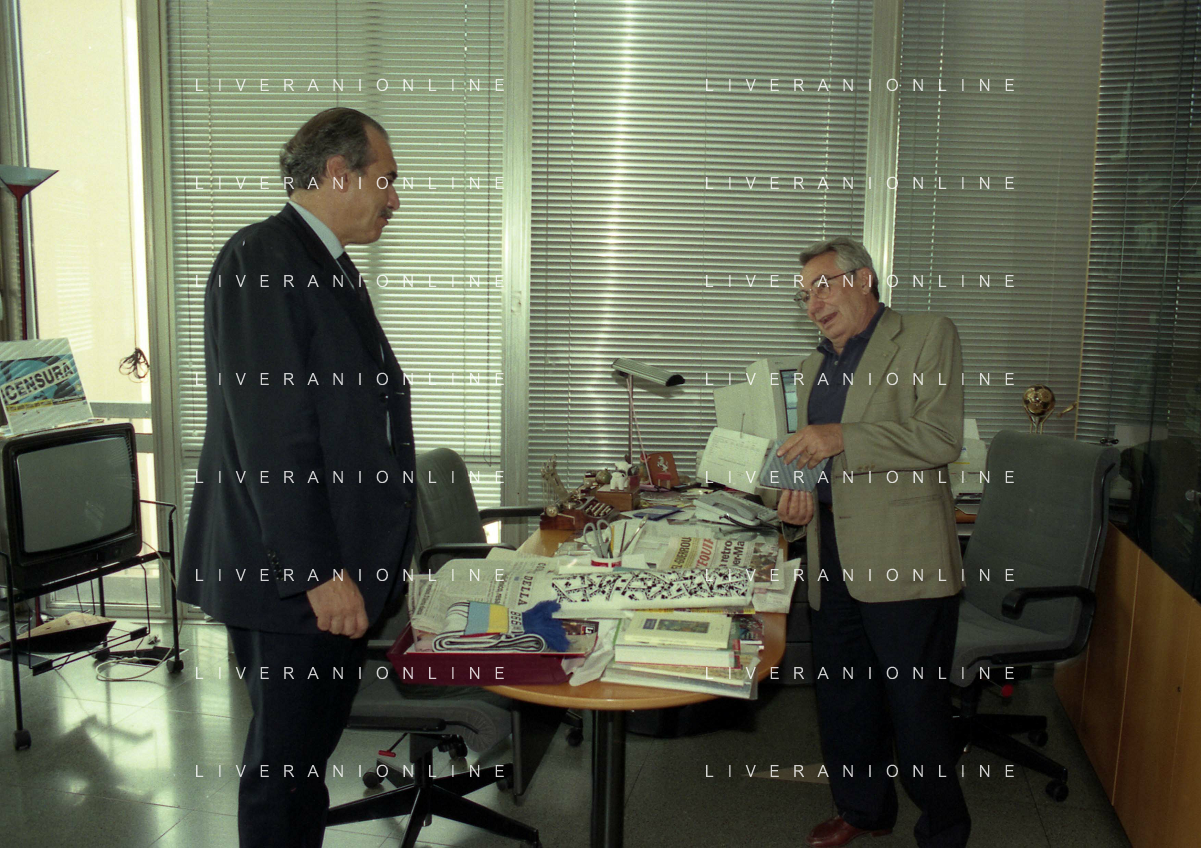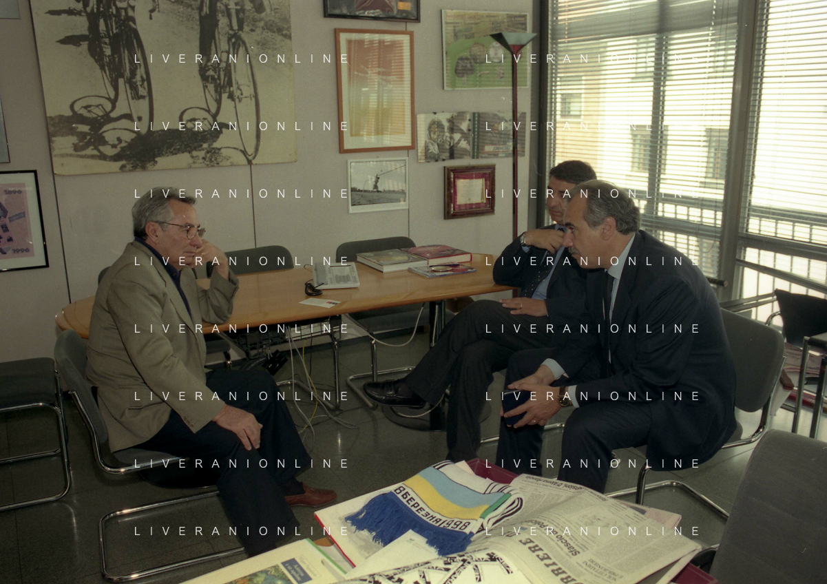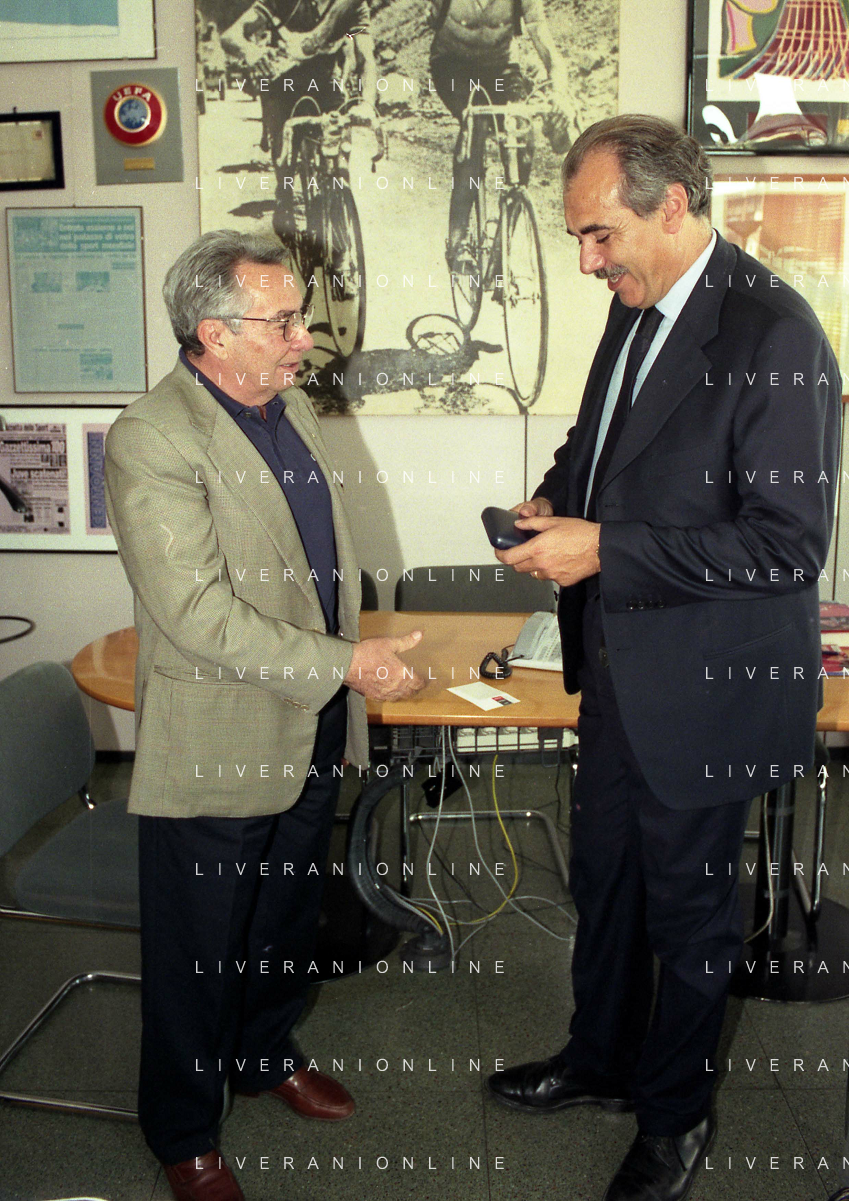 milano 08-07-1999 visita del presidente della reggina calcio allla sede della gazzetta dello sport in via solferino nella foto paasquale foti con candido cannavo' ag aldo liverani sas