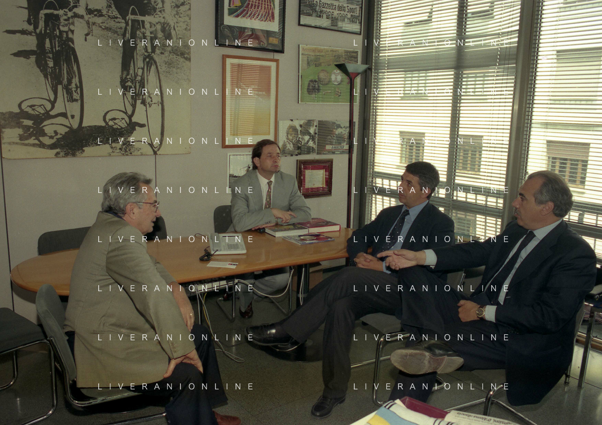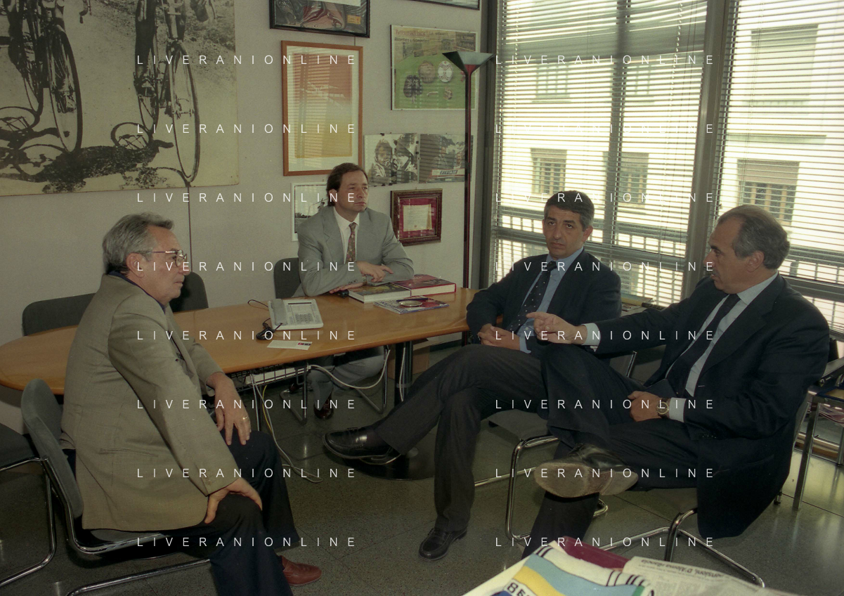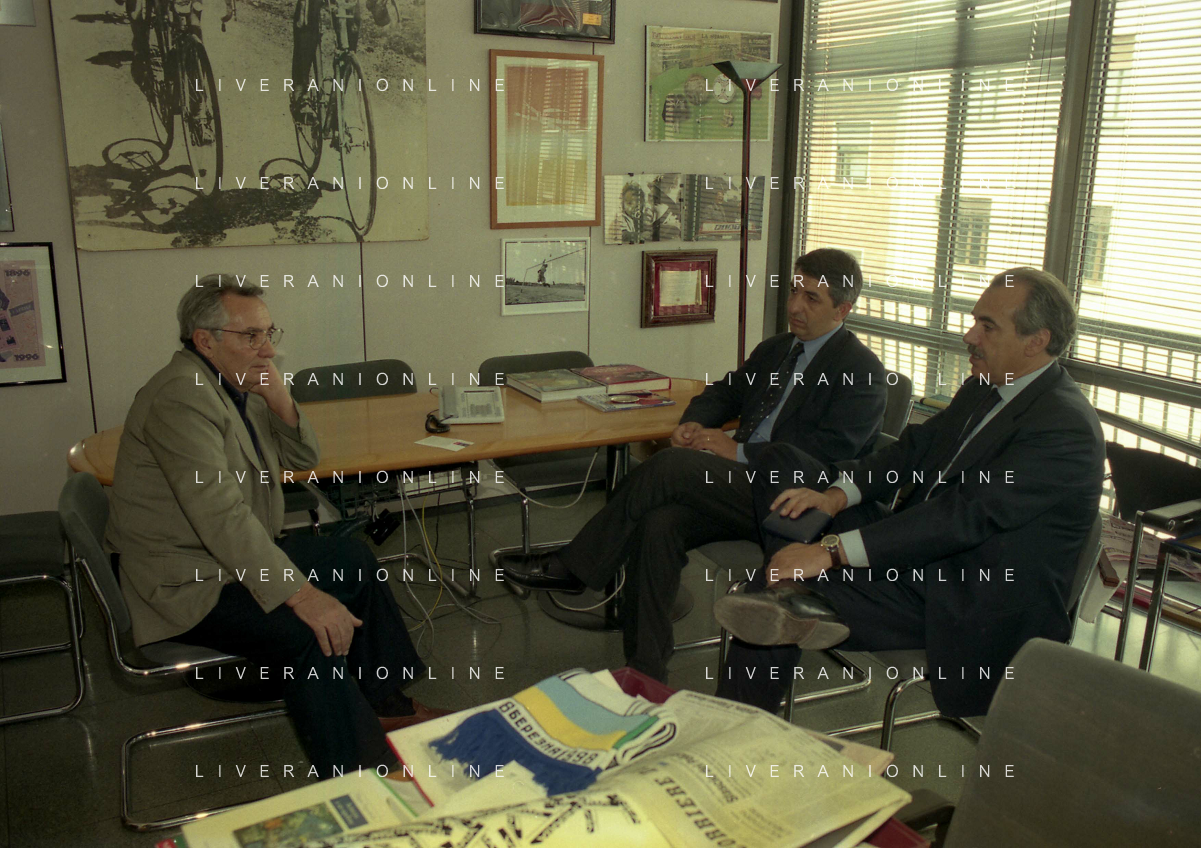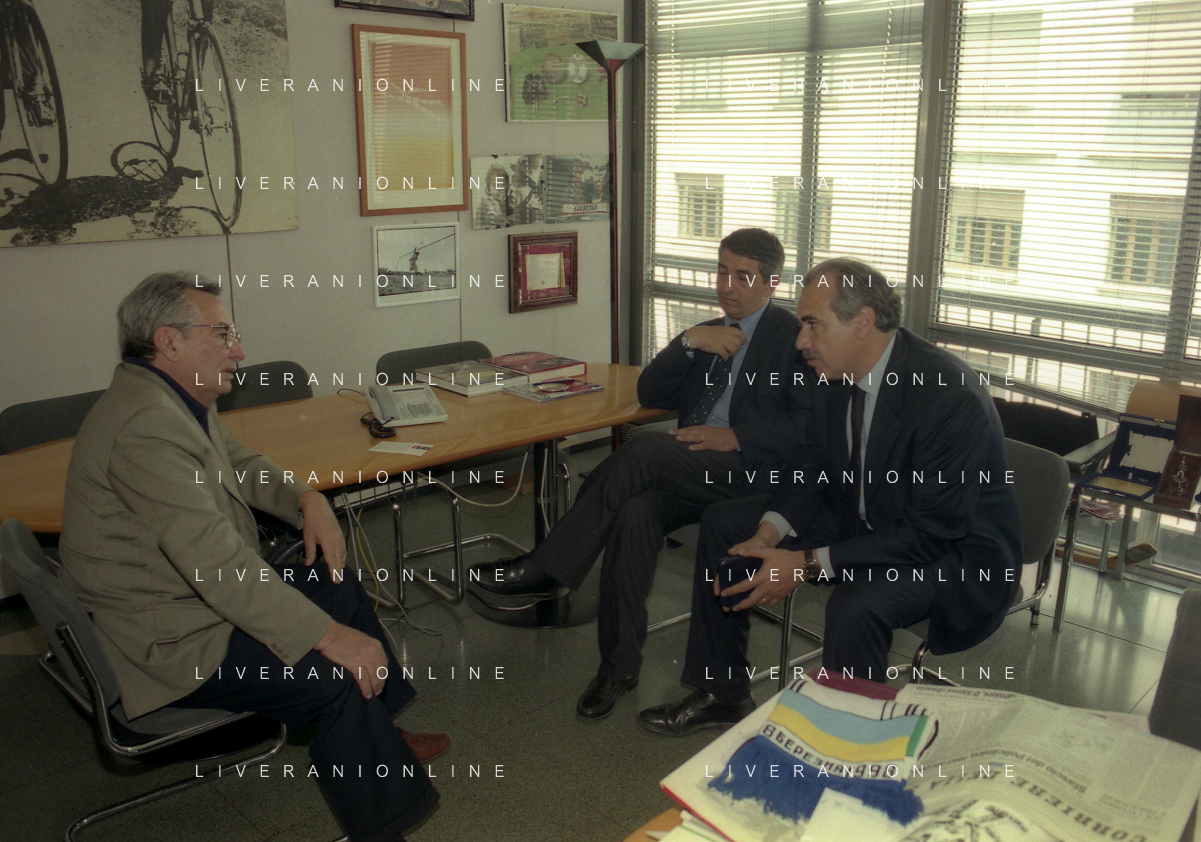 milano 08-07-1999 visita del presidente della reggina calcio allla sede della gazzetta dello sport in via solferino nella foto paasquale foti con candido cannavo' ag aldo liverani sas