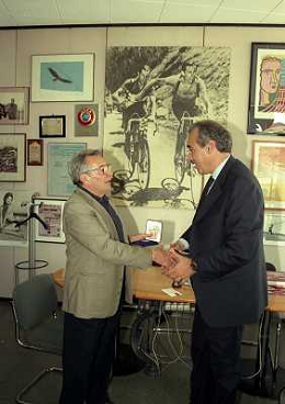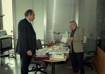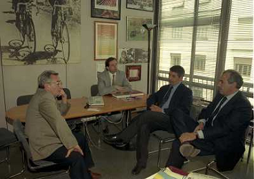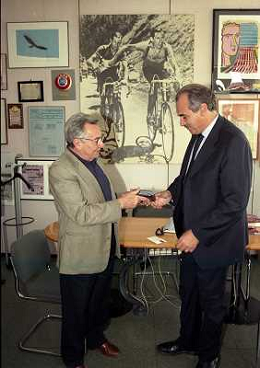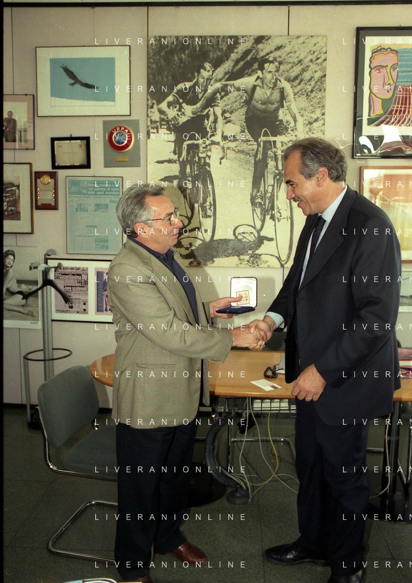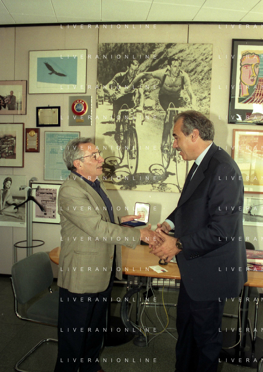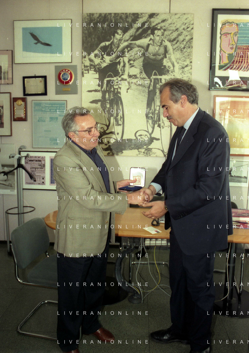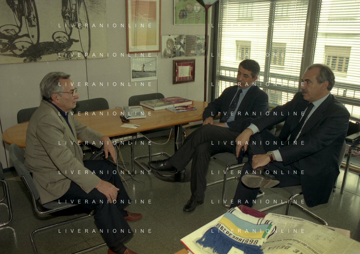 milano 08-07-1999 visita del presidente della reggina calcio allla sede della gazzetta dello sport in via solferino nella foto paasquale foti con candido cannavo' ag aldo liverani sas