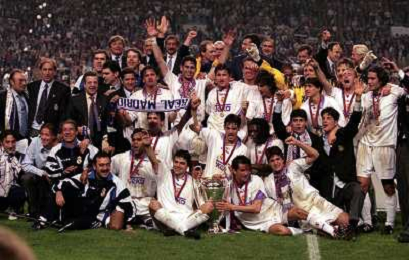 AMSTERDAM 20-05-1998 FINALE DI CHAMPIONS LEAGUE REAL MADRID JUVENTUS NELLA FOTO I GIOCATORI DEL REAL MADRID A FINE GARA AG ALDO LIVERANI SAS