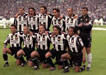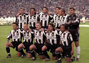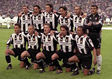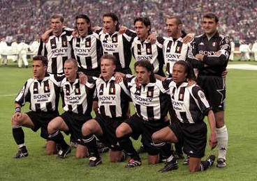AMSTERDAM 20-05-1998 FINALE DI CHAMPIONS LEAGUE REAL MADRID JUVENTUS NELLA FOTO FORMAZIONE ZINEDINE ZIDANE-MORENO TORRICELLI-MARK IULIANO-FILIPPO INZAGHI-PAOLO MONTERO-ANGELO PERUZZI SED ANGELO DI LIVIO-GIANLUCA PESSOTTO-DIDIER DESCHAMPS-ALESSANDRO DEL PIERO-EDGARD DAVIDS AG ALDO LIVERANI SAS