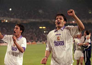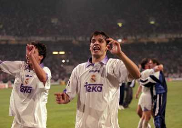 AMSTERDAM 20-05-1998 FINALE DI CHAMPIONS LEAGUE REAL MADRID JUVENTUS NELLA FOTO Fernando Morientes CON RAUL AG ALDO LIVERANI SAS