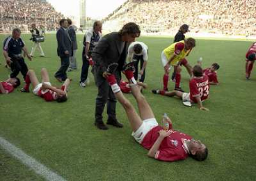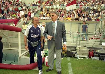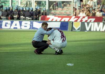 21-06-1998 REGGIO EMILIA SPAREGGIO PROMOZIONE PER LA SERIE A NELLA FOTO GIANCARLO CAMOLESE CONFORTA I GIOCATORI DEL TORINO AG ALDO LIVERANI SAS