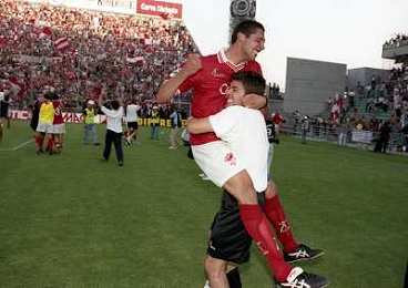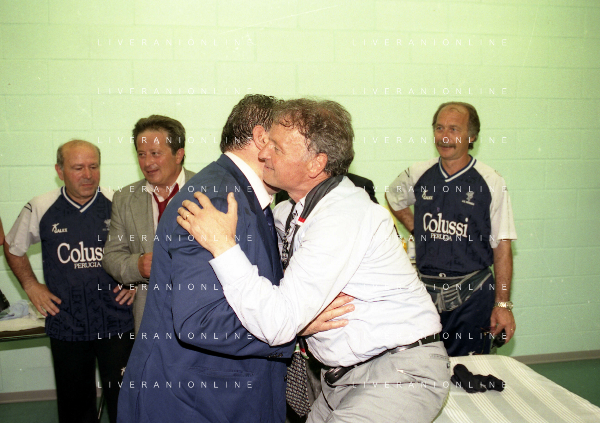 21-06-1998 REGGIO EMILIA SPAREGGIO PROMOZIONE PER LA SERIE A NELLA FOTO ABBRACCI PERUGIA A FINE GARA AG ALDO LIVERANI SAS