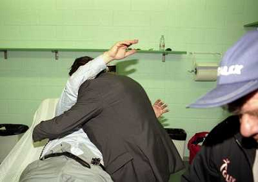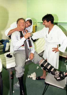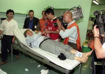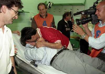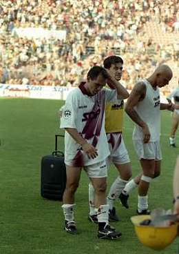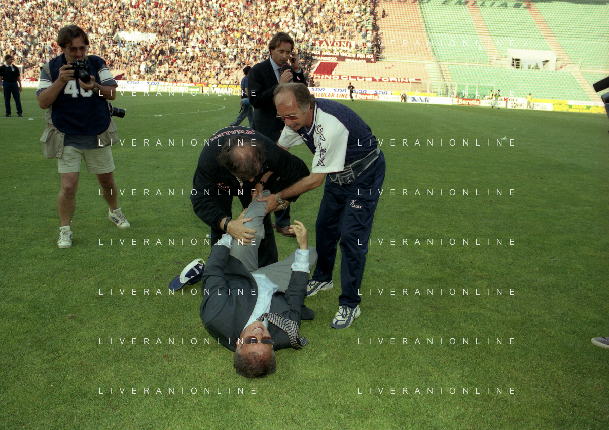 21-06-1998 REGGIO EMILIA SPAREGGIO PROMOZIONE PER LA SERIE A NELLA FOTO INFORTUNIO ILARIO CASTAGNER CON LUCIANO GAUCCI AG ALDO LIVERANI SAS