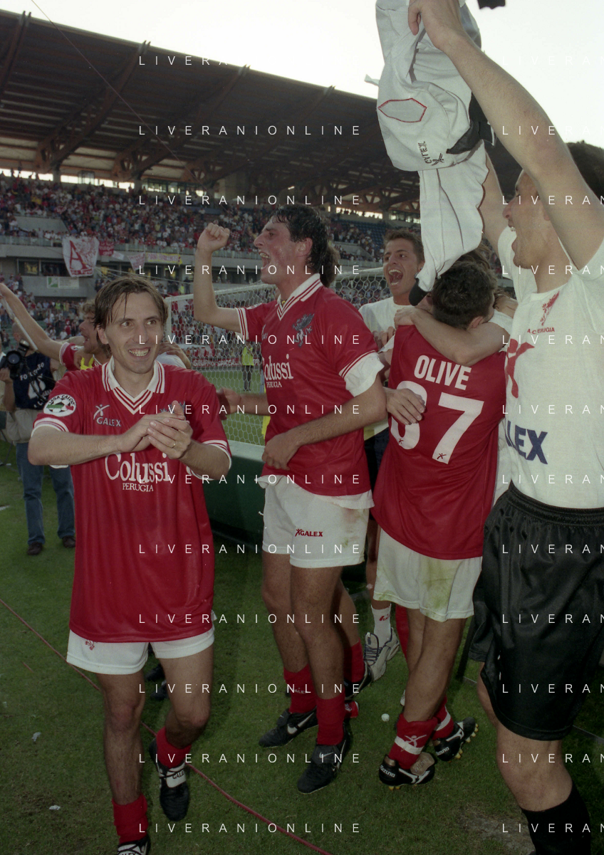 21-06-1998 REGGIO EMILIA SPAREGGIO PROMOZIONE PER LA SERIE A NELLA FOTO ESULTANZA PERUGIA AG ALDO LIVERANI SAS