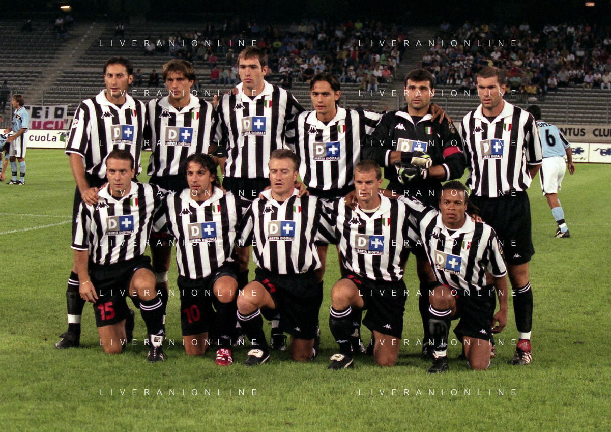 TORINO 29-08-1998 SUPERCOPPA ITALIANA JUVENTUS LAZIO NELLA FOTO LA FORMAZIONE DELLA JUVENTUS MARK IULIANO-ALESSIO TACCHINARDI-IGOR TUDOR-FILIPPO INZAGHI-ANGELO PERUZZI-ZINEDINE ZIDANE SED ALESSANDRO BIRINDELLI-ALESSANDRO DEL PIERO-DIDIER DESCHAMPS-GIANLUCA PESSOTTO-EDGARD DAVIDS AG ALDO LIVERANI SAS