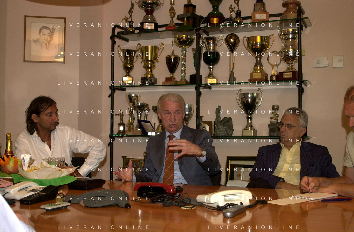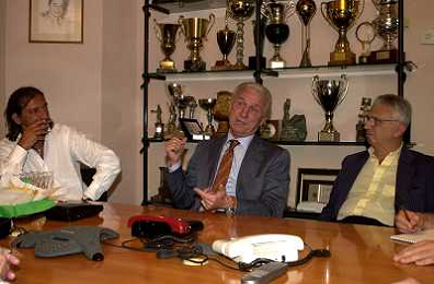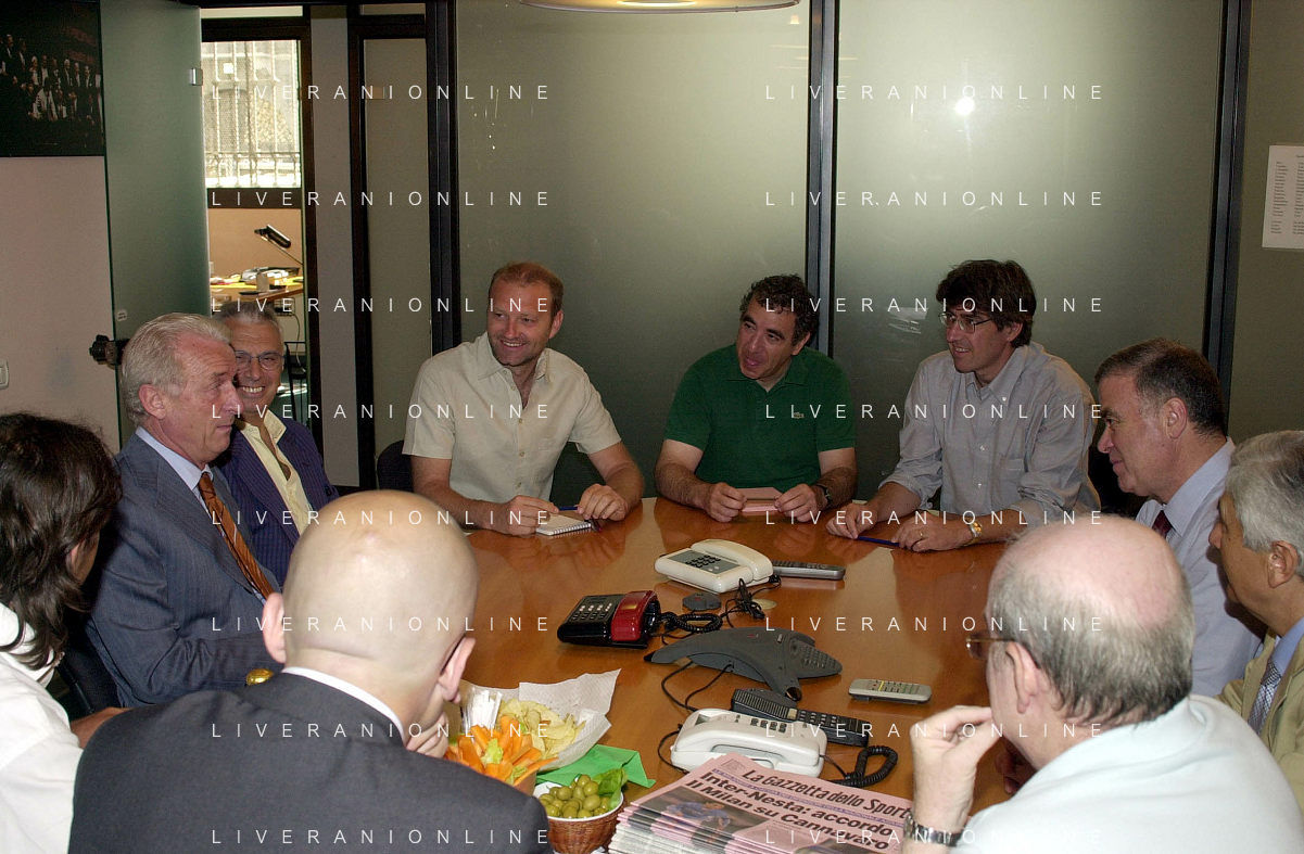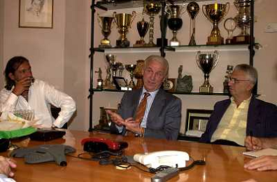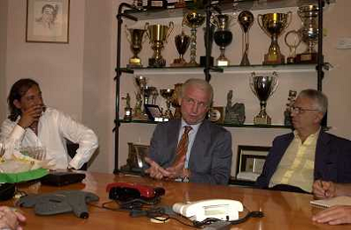 MILANO,09-07-02 DFP/ FOTO GIORGIO RAVEZZANI GIOVANNI TRAPATTONI IN GAZZETTA DELLO SPORT NELLA FOTO GIOVANNI TRAPATTONI CON LUDOVICO MARADEI E BIANCHI AG ALDO LIVERANI SAS