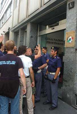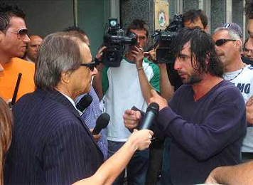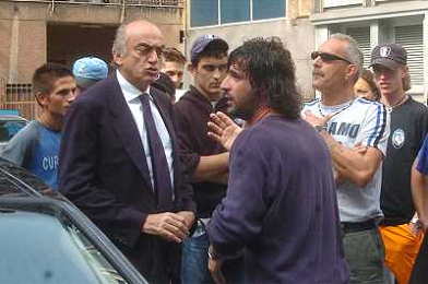 Milano 07/07/2005 Assemblea di Lega nella foto: Pastorello con Cellino discutono con un ultras foto Arcaini / Ag.Aldo liverani