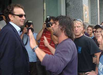 Milano 07/07/2005 Assemblea di Lega nella foto: Giuseppe Marotta con un ultras foto Arcaini / Ag.Aldo liverani