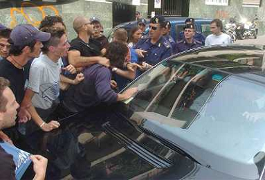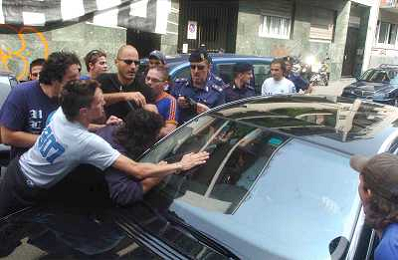 Milano 07/07/2005 Assemblea di Lega nella foto: Auto di Enrico Preziosi circondata dagli ultras foto Arcaini / Ag.Aldo liverani