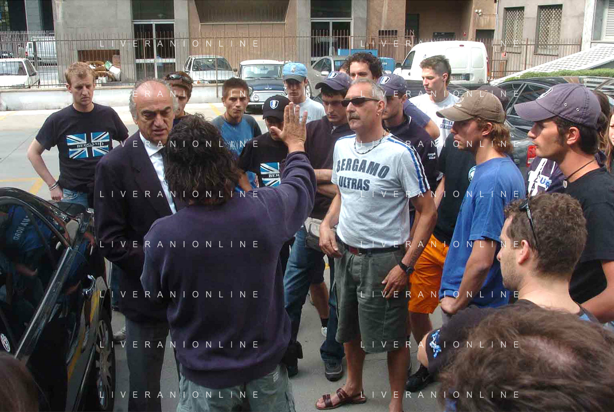 Milano 07/07/2005 Assemblea di Lega nella foto: Gino Corioni con ultras foto Arcaini / Ag.Aldo liverani