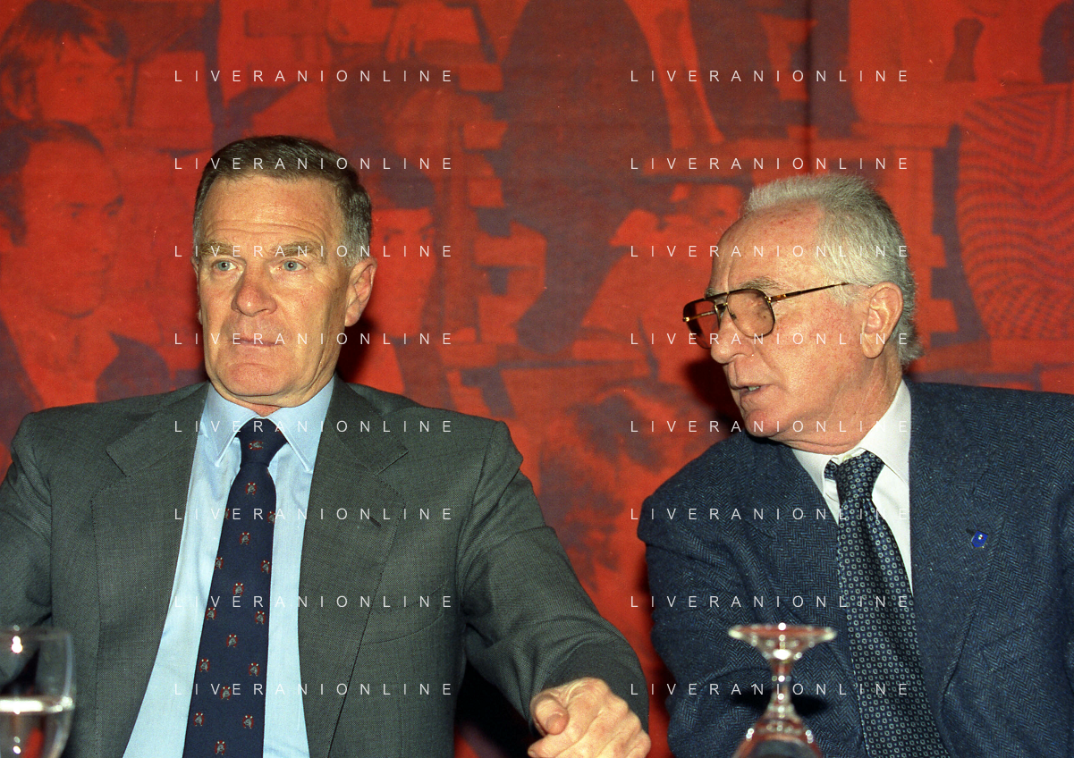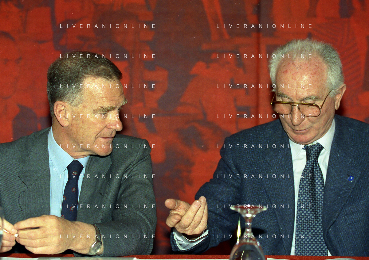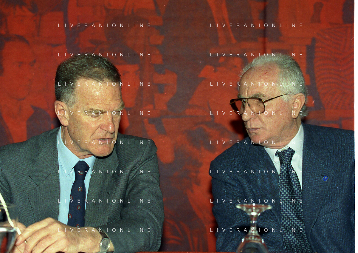 MILANO 12-04-1999 ASSEMBLEA AIC NELLA FOTO SERGIO CAMPANA CON AZEGLIO VICINI AG ALDO LIVERANI SAS