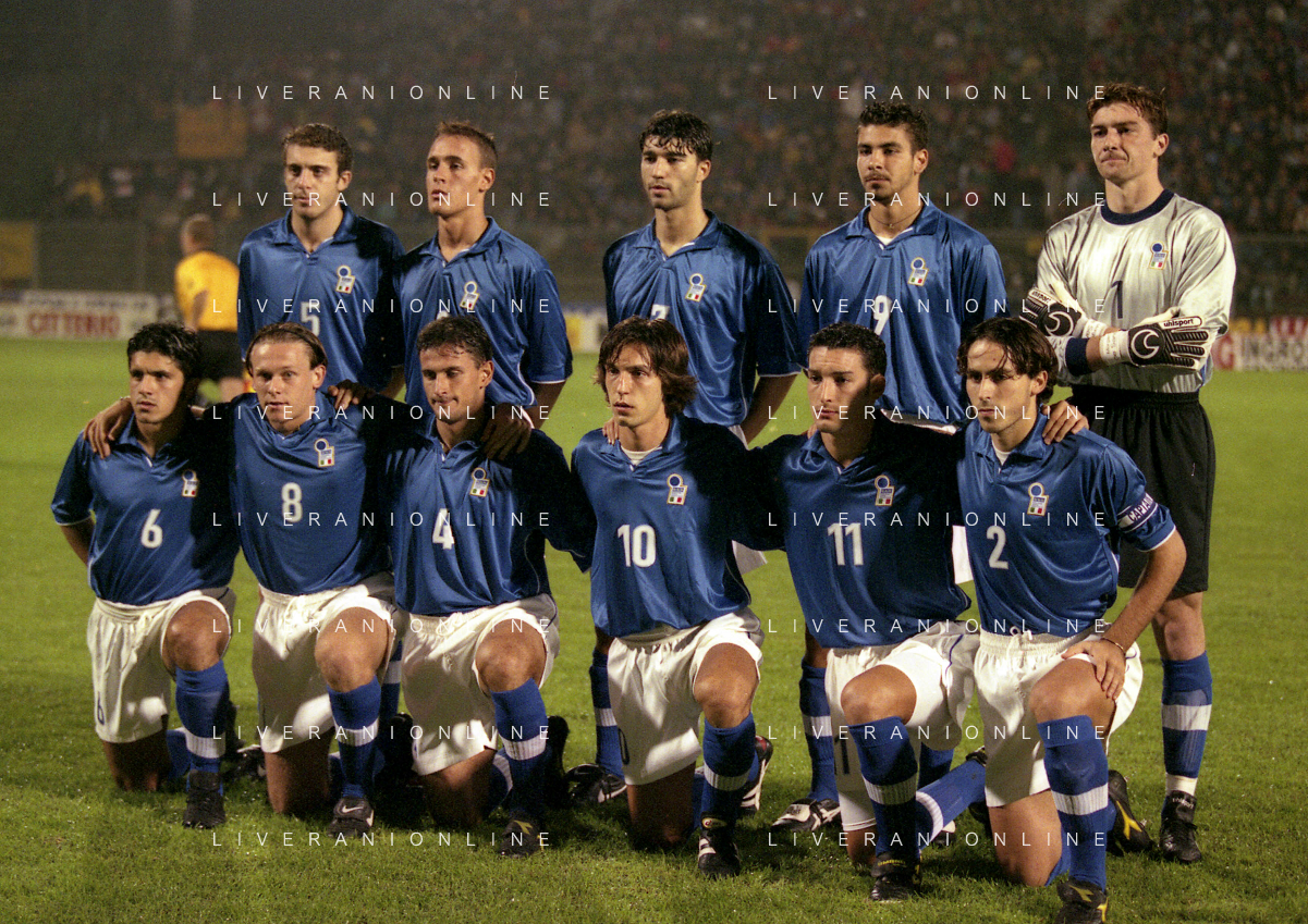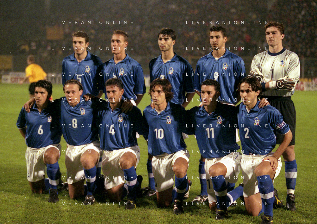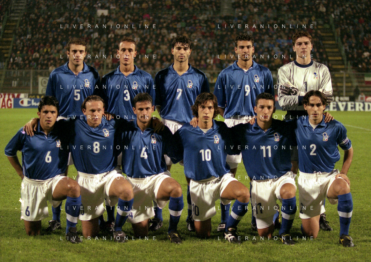 09-10-1998 CREMONA ITALIA SVIZZERA UNDER 21 NELLA FOTO IN PIEDI RAFFAELE LONGO-LUCA MEZZANO-GIANNI COMANDINI-FAUSTO ROSSINI-MORGAN DE SANCTIS SED GENNARO GATTUSO-ROBERTO BARONIO- MARCO ZANCHI-ANDREA PIRLO-GIANLUCA ZAMBROTTA-ALESSANDRO GRANDONI AG ALDO LIVERANI SAS