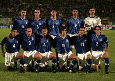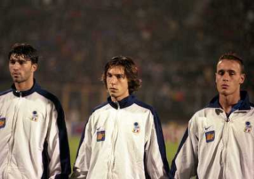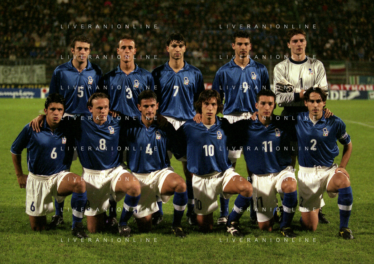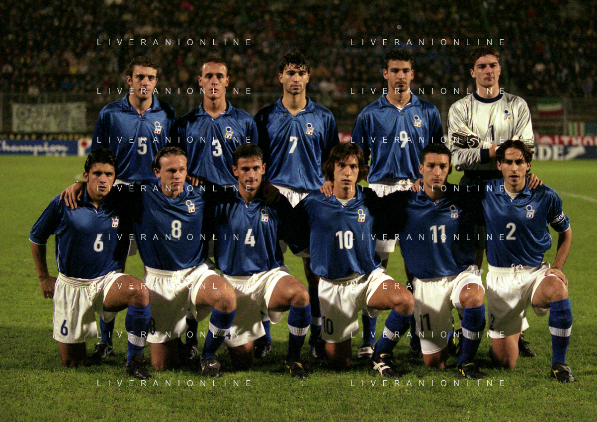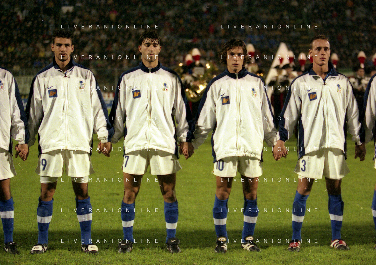 09-10-1998 CREMONA ITALIA SVIZZERA UNDER 21 NELLA FOTO IN PIEDI RAFFAELE LONGO-LUCA MEZZANO-GIANNI COMANDINI-FAUSTO ROSSINI-MORGAN DE SANCTIS SED GENNARO GATTUSO-ROBERTO BARONIO- MARCO ZANCHI-ANDREA PIRLO-GIANLUCA ZAMBROTTA-ALESSANDRO GRANDONI AG ALDO LIVERANI SAS