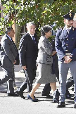 Funerali dell'ex Capo dello Stato Carlo Azeglio Ciampi nella Chiesa di San Saturnino Martire a Roma 19 settembre 2016 nella foto Romano Prodi con la moglie Flavia ©Corredati / AGENZIA ALDO LIVERANI SAS
