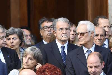 Funerali dell'ex Capo dello Stato Carlo Azeglio Ciampi nella Chiesa di San Saturnino Martire a Roma 19 settembre 2016 nella foto Romano Prodi ©Corredati / AGENZIA ALDO LIVERANI SAS