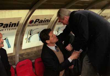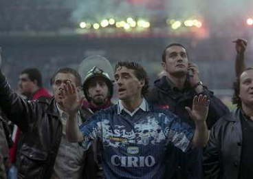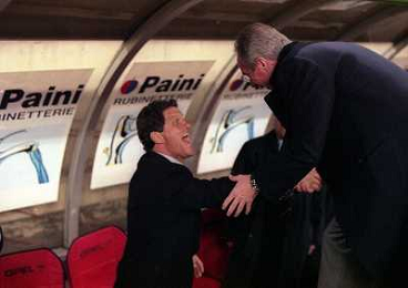 MILANO 08-04-1998 MILAN LAZIO COPPA ITALIA NELLA FOTO ROBERTO MANCINI CERCA DI CALMARE LA TIFOSERIA LAZIALE AG ALDO LIVERANI SAS