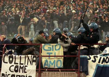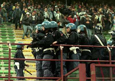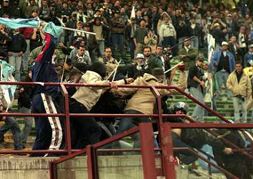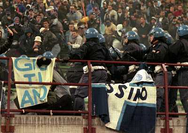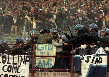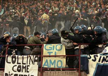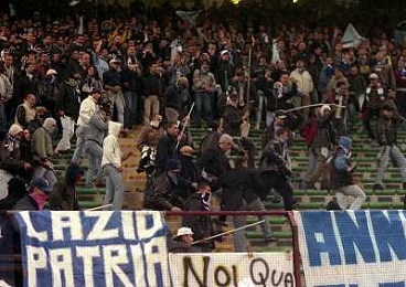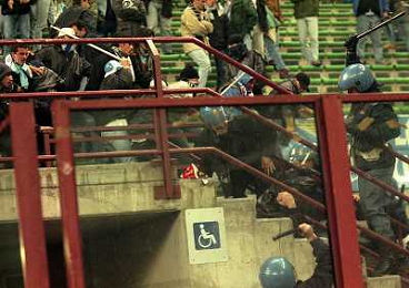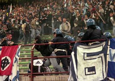 MILANO 08-04-1998 MILAN LAZIO COPPA ITALIA NELLA FOTO SCONTRI TRA LA POLIZIE E I TIFOSI LAZIALI AG ALDO LIVERANI SAS